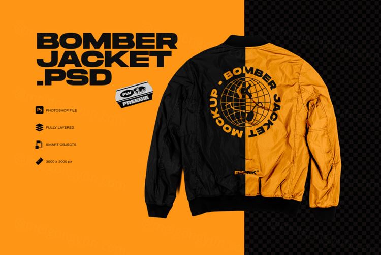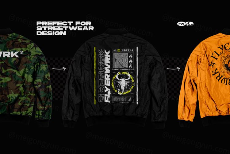 图穷联素材库 » 街头嘻哈潮流飞行员夹克服装设计提案样机PSD模板 BOMBE