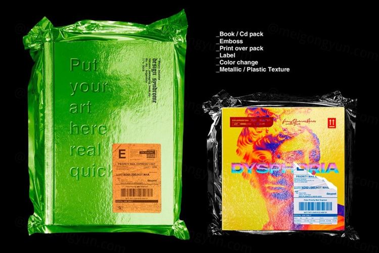 图穷联素材库 » 复古书籍/CD/金属/塑料密封真空包装样机PSD模板 Met