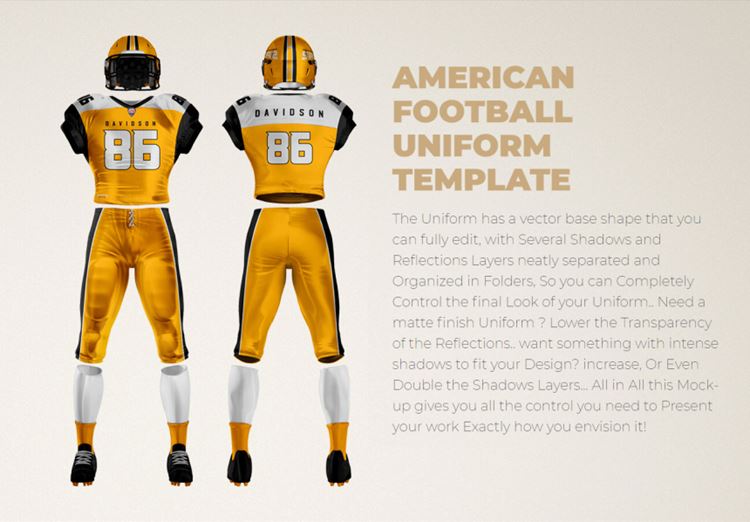 美式足球橄榄球制服运动服设计提案样机PSD模板 TouchD