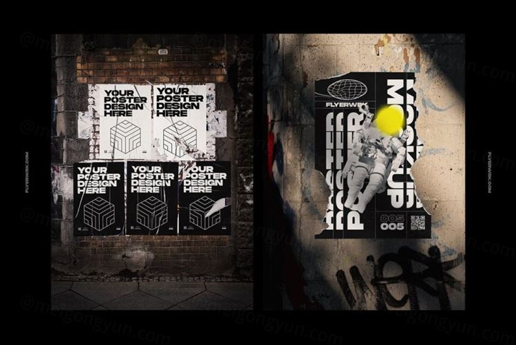 图穷联素材库 » 街头潮流都市肮脏的街道墙面褶皱海报传单设计贴图样机模板 Ur