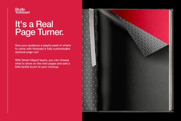 通过 Honbako 的完全可定制的可选页面卷曲,让您的观众轻松一瞥。使用智能对象图层,您可以选择在下一页上显示的内容,并为您的模型添加一些扭曲。