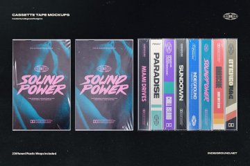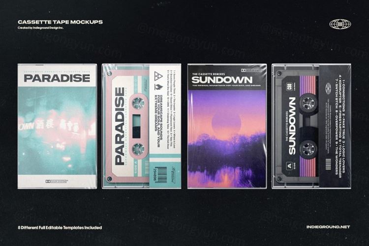 8 个 PSD 文件,每个文件都有不同的可编辑盒式标签模板