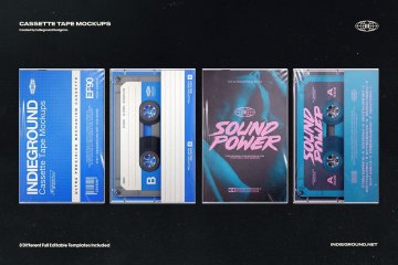 图穷联素材库 » 复古怀旧写实老物件盒式磁带贴图样机PSD模板 Indiegr