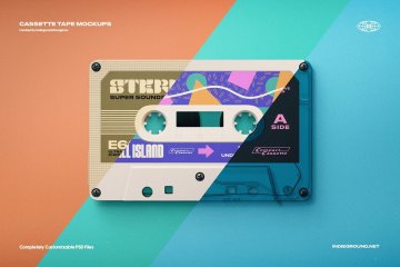 复古怀旧写实老物件盒式磁带贴图样机PSD模板 Indiegr