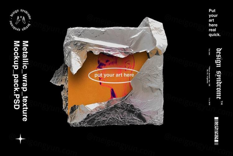 图穷联素材库 » 金属铝箔纸包裹的CD封套设计展示样机PSD模板 Metall
