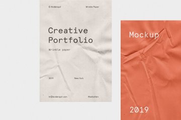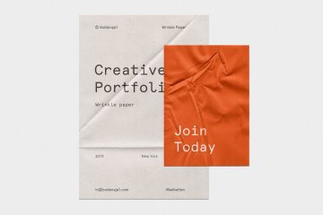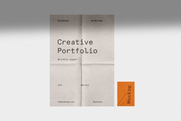 图穷联素材库 » 逼真自然的褶皱折痕纸张做旧仿旧传单海报设计样机模板 Wrin