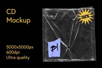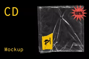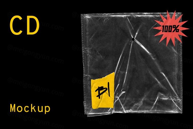 图穷联素材库 » 做旧透明光盘塑料包装袋设计展示样机PSD模板 CD Pack
