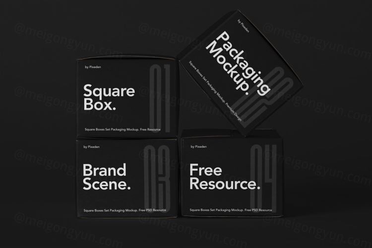 图穷联素材库 » 方形瓦楞纸纸箱快递箱包装设计提案样机PSD模板 Packag