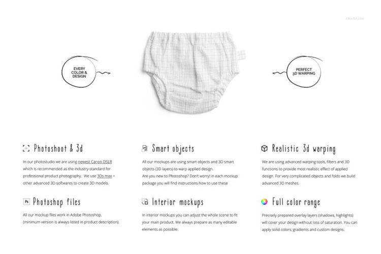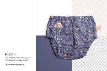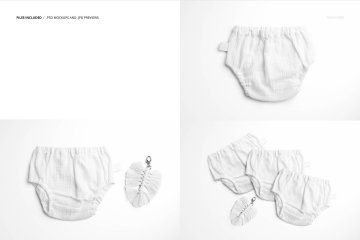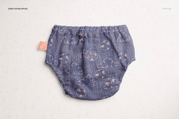 图穷联素材库 » 婴儿薄纱尿布短裤棉裤设计贴图样机PSD模板 Baby Mus
