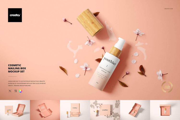 化妆品美容产品物流快递包装盒设计贴图样机PSD模板 Cosm