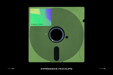 图穷联素材库 » 高质量复古老物件磨砂软盘样机模板塑料贴纸素材 Floppy