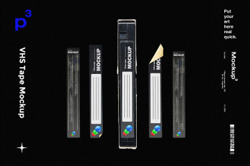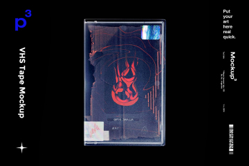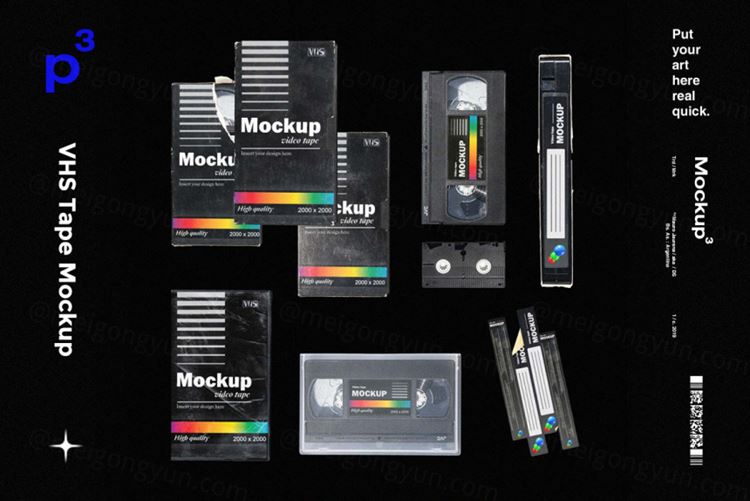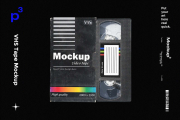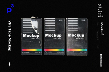 图穷联素材库 » 高质量老物件磁带盒贴纸包装设计样机PSD模板 Mockupp