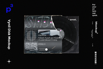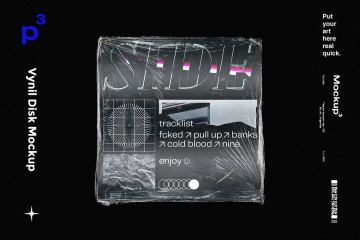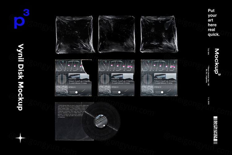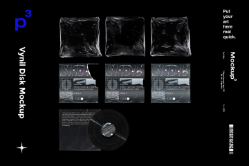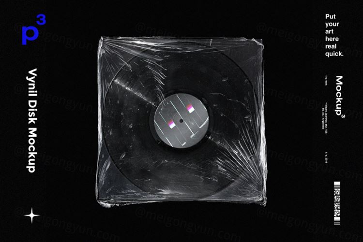 图穷联素材库 » 复古老物件塑料薄膜乙烯基黑胶唱片包装设计样机模板 Mocku