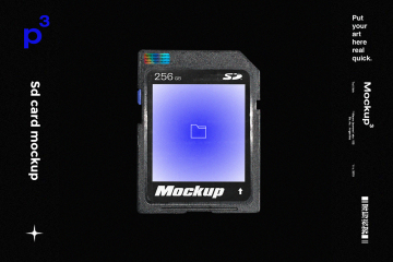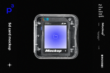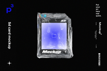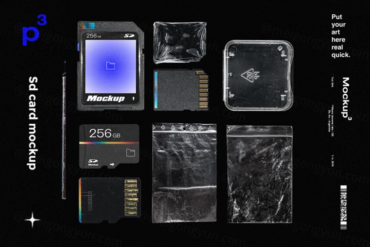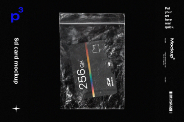 图穷联素材库 » 复古老物件SD内存卡卡包塑料袋设计展示样机 Mockuppp