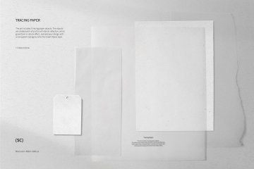 该套装包括 3 个描图纸对象。这些对象是通过内部反射功能创建的,这赋予了它们自然的效果。只需将具有透明背景的设计添加到智能对象层即可。