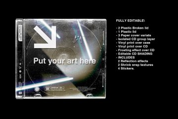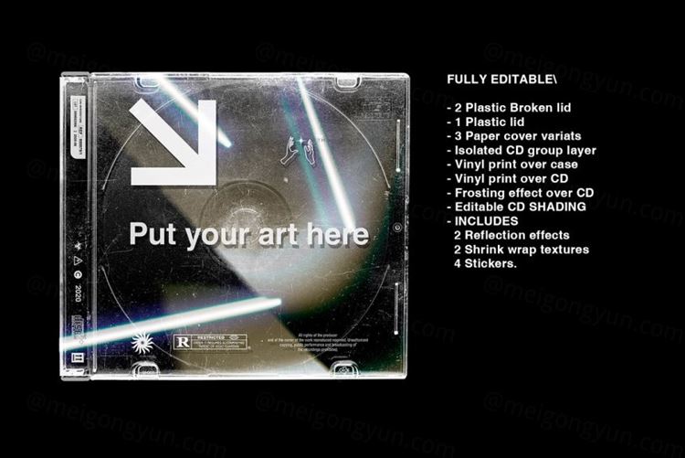 图穷联素材库 » 复古磨损做旧音乐专辑CD封面塑料包装设计展示样机PSD模板