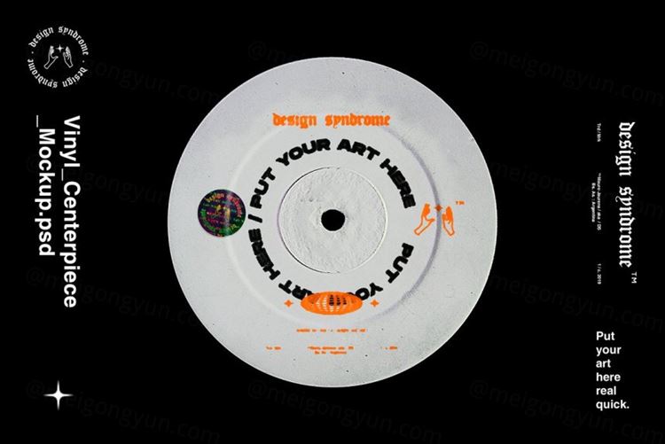 图穷联素材库 » 复古老物件乙烯基音乐唱片封面设计展示样机PSD模板 Viny