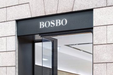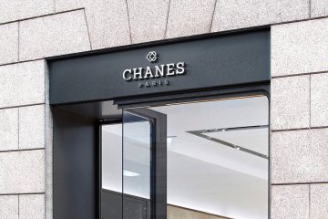 图穷联素材库 » 商店商铺门头店标LOGO设计展示样机PSD模板 Logo M