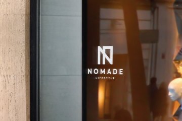 图穷联素材库 » 商店橱窗玻璃防撞提示LOGO店名设计提案样机模板 Logo