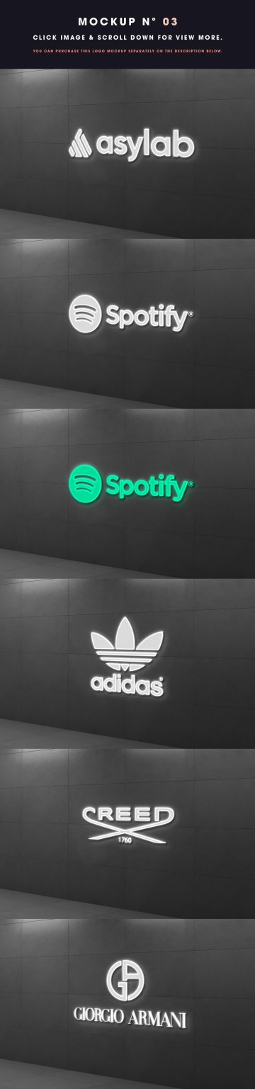 03 - 徽标 模型3美元 - https://creativemarket.com/Asylab/4781271-Logo-Mockup-3D-Wall-Luminous?u=Asylab
