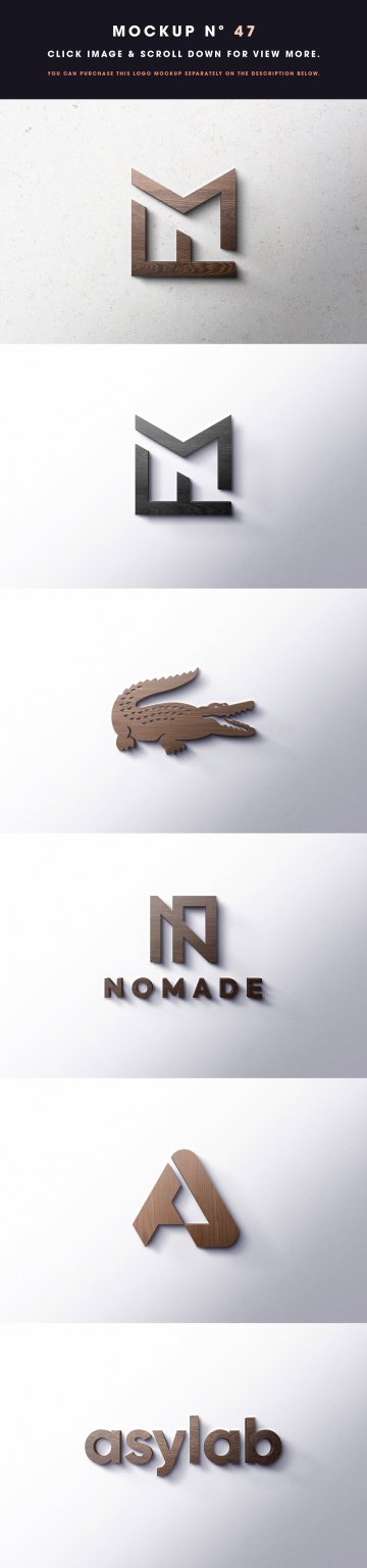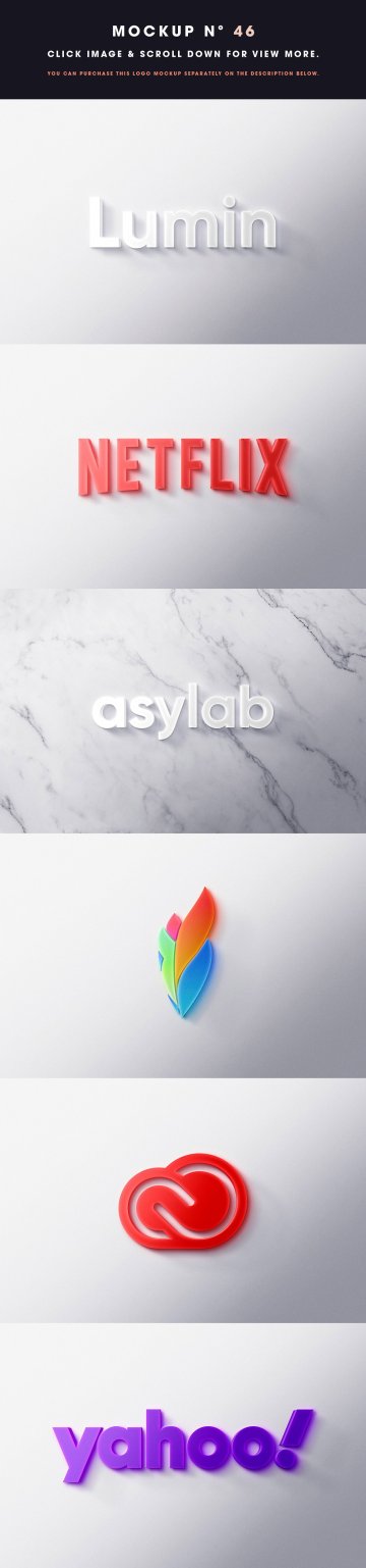 47 - 徽标样机 10 美元 - (包括 8 个不同的样机 + 更多功能 - 只有下面的链接) - https://creativemarket.com/Asylab/4430724-8-Front-3D-Logo-Mockups?u=Asylab