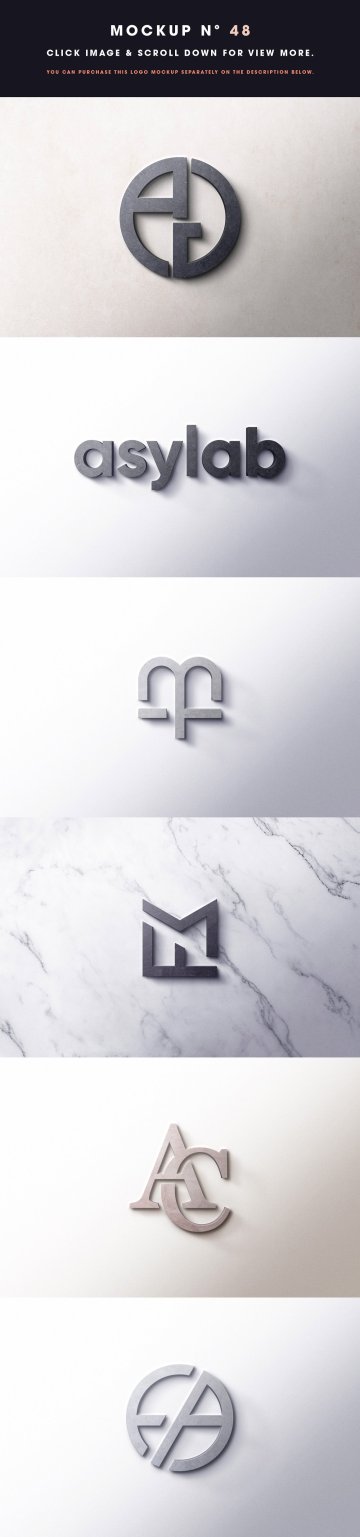 48 - 徽标样机 10 美元 - (包括 8 个不同的样机 + 更多功能 - 只有下面的链接) - https://creativemarket.com/Asylab/4430724-8-Front-3D-Logo-Mockups?u=Asylab