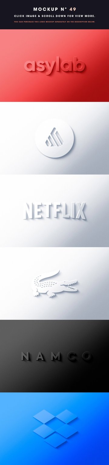 49 - 徽标样机 10 美元 - (包括 8 个不同的样机 + 更多功能 - 只有下面的链接) - https://creativemarket.com/Asylab/4430724-8-Front-3D-Logo-Mockups?u=Asylab