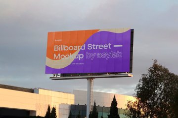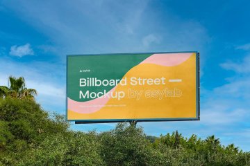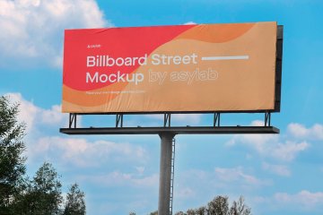 逼真的广告牌街模型,只需点击几下即可放置您自己的图像,为您提供逼真的结果、有组织的文件并轻松替换设计。
