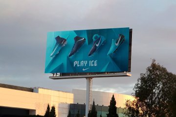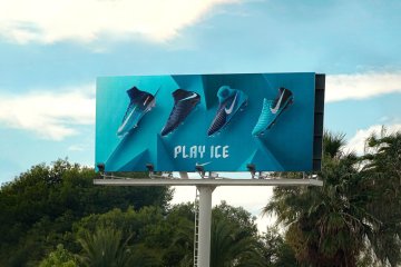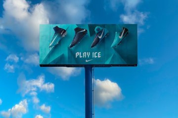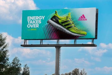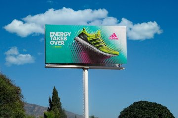 Billboard Street Mockup 包括智能对象(REPLACE THIS DESIGN)来放置您自己的设计,可定制的广告牌闪电。