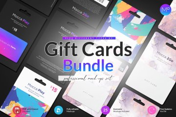 一个模型和这么多选项可供选择!您将获得 5 种不同类型的礼品卡。每个包含 5 个产品视图,以展示您自己的礼品卡套装!只需拖放即可放置设计并进行出色的演示。就这样?当然,试试吧。