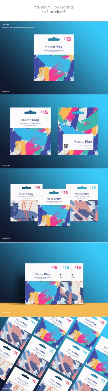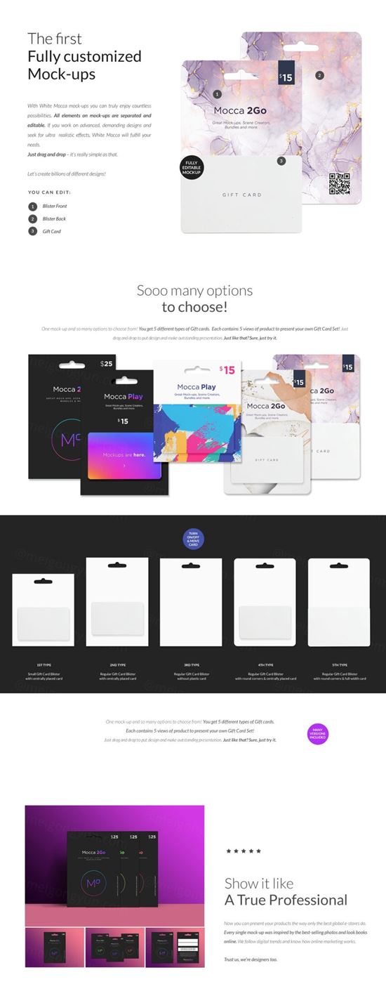 一个模型和这么多选项可供选择!您将获得 5 种不同类型的礼品卡。每个包含 5 个产品视图,以展示您自己的礼品卡套装!只需拖放即可放置设计并进行出色的演示。就这样?当然,试试吧。在 5 种类型之间进行选择: