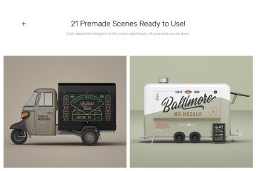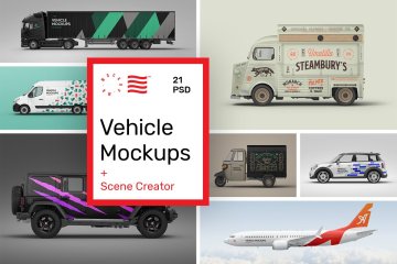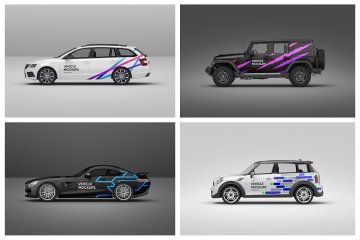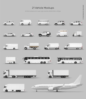 使用我们的 Vehicle Mockups - Car Mockups Pack 让您的车辆设计演示更具吸引力! 替换智能对象中的设计,点击保存,您就完成了。更改车身、轮辋和车窗的颜色。玩光和阴影的不透明度。您可以添加自己的背景或从 4 种工作室风格和 9 种户外图像中进行选择。所有 PSD 模型均采用 300dpi 的超高分辨率 8000×5333。