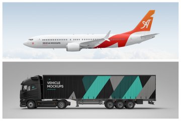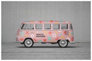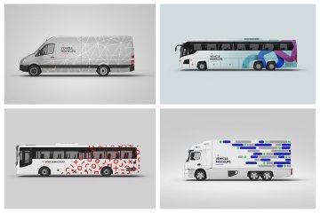 高质量复古汽车大小巴飞机车身广告贴图提案样机模板 Vehic