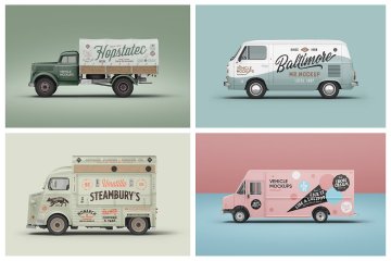 图穷联素材库 » 高质量复古汽车大小巴飞机车身广告贴图提案样机模板 Vehic