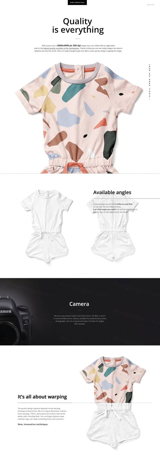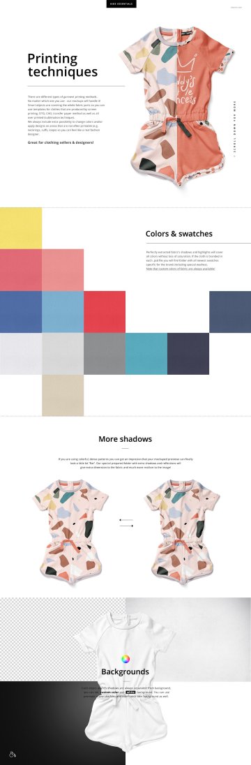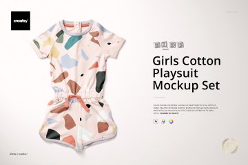 女孩棉质连身裤模板 - 分层、可编辑的 .psd 文件,通过编辑智能对象和颜色层来展示您的定制设计。