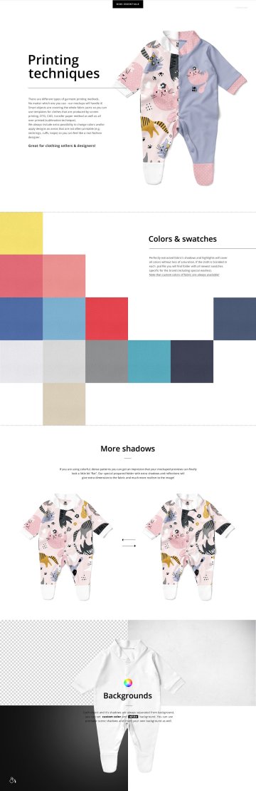 Babygrow 睡衣模板 - 分层、可编辑的 .psd 文件,可通过编辑智能对象和颜色层来展示您的定制设计。