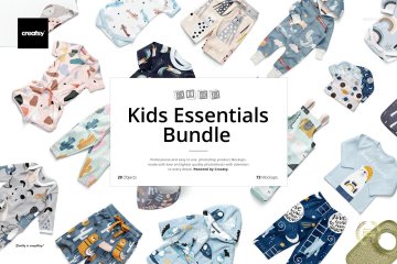Kids Essentials 模板 - 分层、可编辑的 .psd 文件,可通过编辑智能对象和颜色层来展示您的自定义设计。