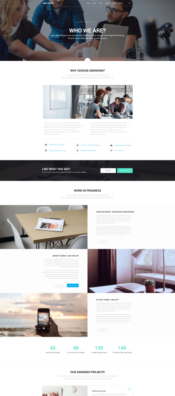 Amonowa; unique Material style PSD Template which allows you to have unlimited options in creating your next project. Amonowa\\\\\\\\\\\\\\\'s creative style and clean layouts can easily be modified into a portfolio or app website.