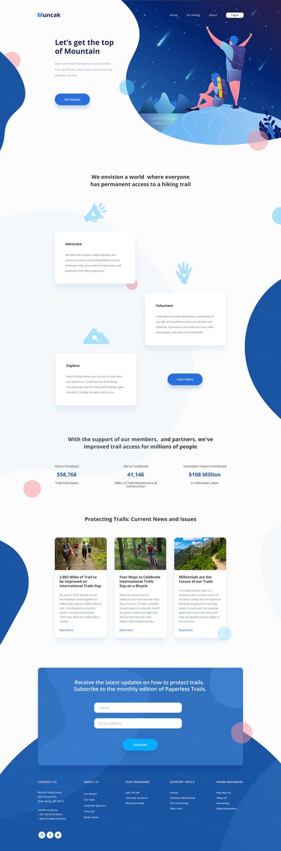 徒步旅行网站登陆页面PSD模板 Hiking Site La