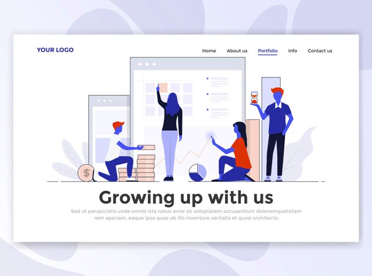 【共同成长】高品质扁平化商业网站着陆页多格式设计模版 Fla
