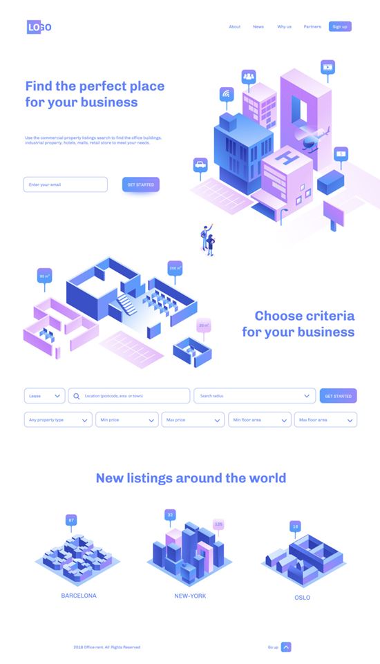 2.5D等距插图设计风格落地页EPS矢量模版素材 shutt