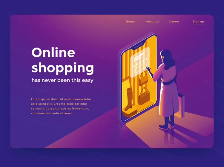 2.5D三维等距设计女子使用智能手机在线购物着陆页模版 10