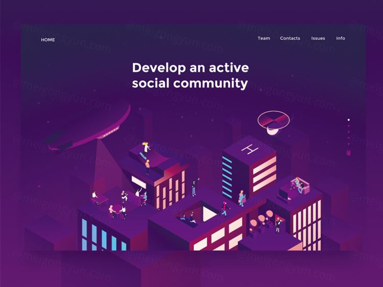 图穷联素材库 » 2.5D三维等距设计屋顶上近距离交流娱乐社交网络平台的概念着