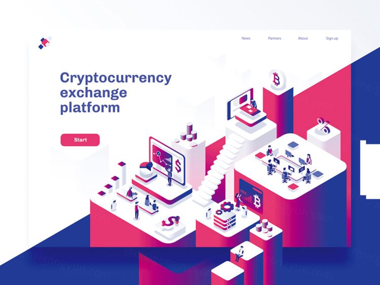 图穷联素材库 » 2.5D三维等距区块链加密货比/分析师/加密着陆页矢量插图模