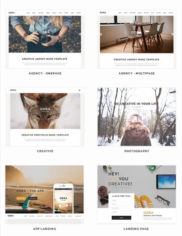 ODRA - 创意多用途Muse模板。ODRA是一个现代而干净的Adobe Muse模板,专为投资组合,创意,摄影,着陆,代理或多用途而设计。使用Adobe Muse编辑此模板非常简单!您可以在几分钟内更改颜色,文本或替换图像。包括桌面平板电脑和手机版!