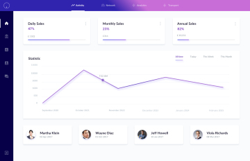 紫色简约时尚干净数据分析CRM系统客户端PSDWeb App