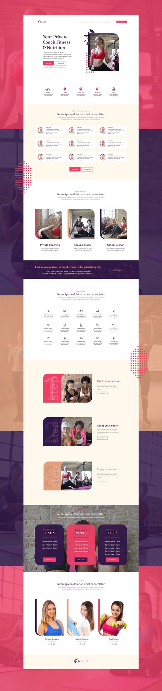 女性健身健美网站落地页XD模版 Nutrifit Landi