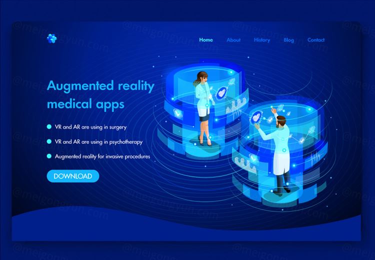 图穷联素材库 » 渐变色2.5D插画风格网页模版vr智能科技
