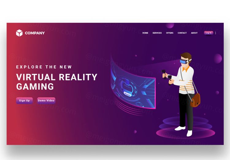 图穷联素材库 » 渐变色2.5D插画风格网页模版vr探索未来智能科技