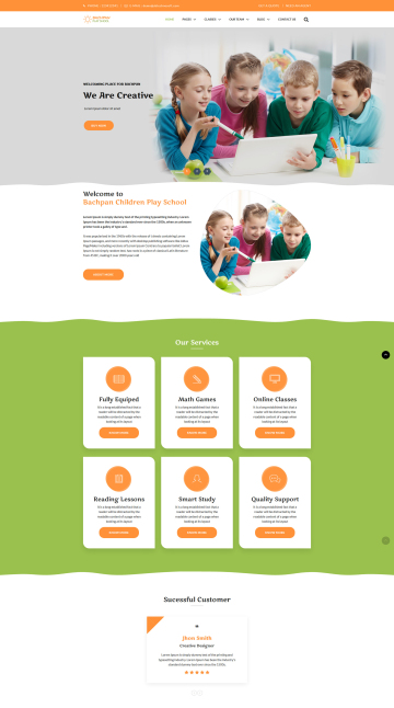 Bachpan游戏学校模板是一个设计精美的HTML模板,适用于幼儿园,日间护理,幼儿园,适用于任何儿童,艺术,工艺,学校和培训网站。这个模板精心制作,带有编码的HTML 5,CSS3和Bootstrap框架,具有惊人的动画效果。